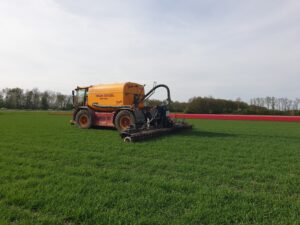 Sinds 2010 bemesten wij gras- en bouwland met een Vredo. Dit is een zelfrijdende mesttank met GPS en vier even grote aangedreven wielen, die overal maar één keer rijden. Hierdoor wordt er nooit meer dan één keer door hetzelfde spoor gereden. De Vredo loopt dus tijdens het bemesten in hondegang. Dit is een uniek concept onder de zelfrijders. De Vredo is voorzien van een Evers Quadro disc, een combi zodenbemester. Tevens is deze bemester uitgevoerd met GPS aangestuurde sectieafsluiting. De werkbreedte van deze bemester is maximaal 12 meter. Hierdoor staan wij garant voor capaciteit en kwaliteit.